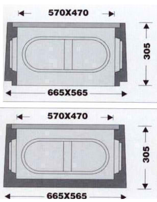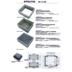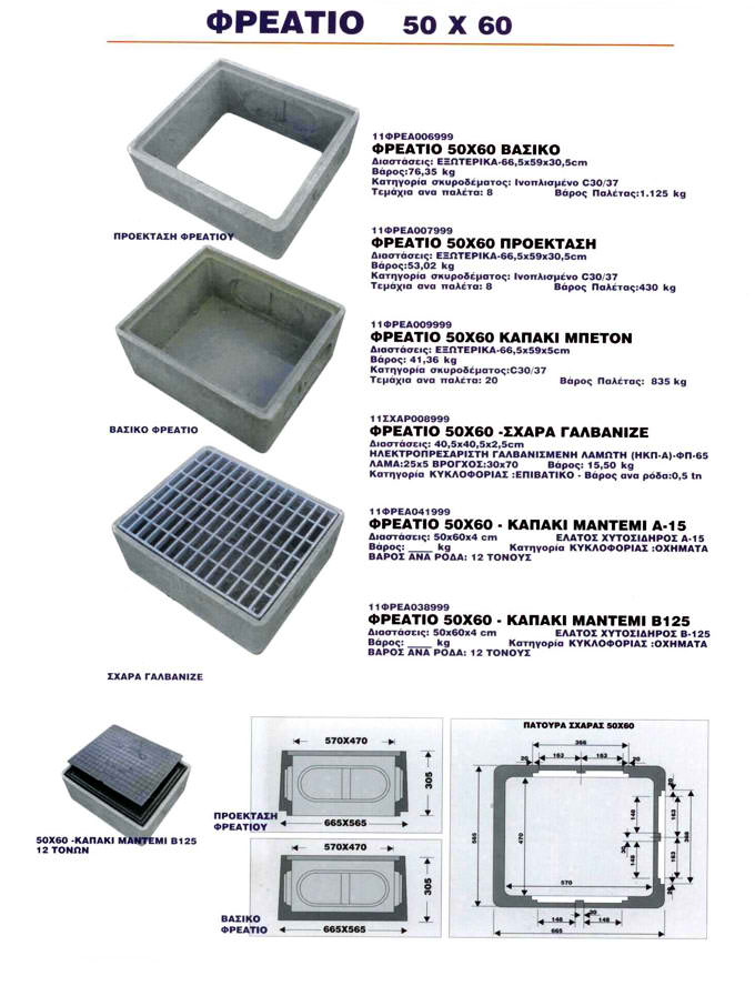 Προκατασκευασμένο φρεάτιο από ινοπλισμένο σκυρόδεμα εξωτερικών διαστάσεων 66,5 x 66,5 x 30,5 cm εσωτερικής διάστασης 57 x 47 cm με πατούρα 50 x 60 cm βάρους 53,02kg