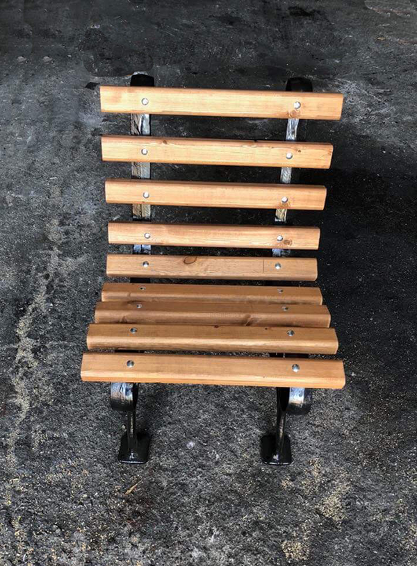 Κάθισμα μιας θέσεως μήκους αποτελούμενο απο 9 ξύλα βαμμένα και λουστραρισμένα.