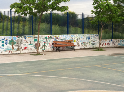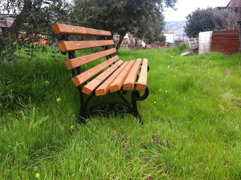 Παραδοσιακό μαντεμένιο παγκάκι 4 θέσεων, με αντικλεπτική προστασία.